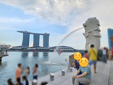 싱가포르 인증숏으로 유명한 머라이언 상에서 나오는 물을 받아먹는 포즈는